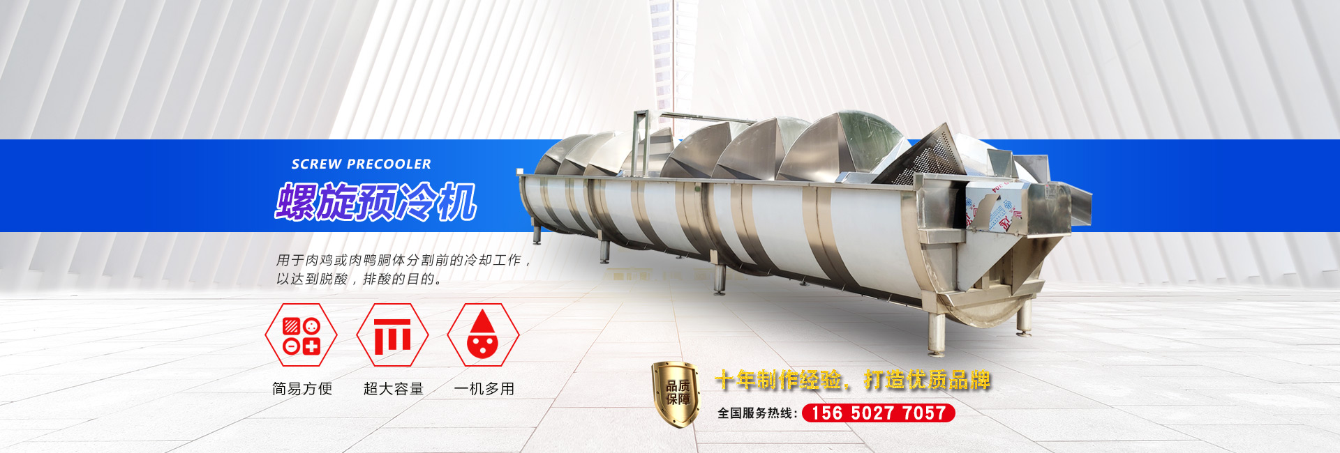 公司主要設備有:A字型立式脫毛機、臥式脫毛機、強力噴淋機、松毛機、浸燙池、螺旋預冷機、禽籠清洗機、電暈機、兔割前爪/后爪機、剝胗機、自動洗鉤機、螺旋燙爪機、雞爪脫皮機、分割輸送帶等屠宰用設備。